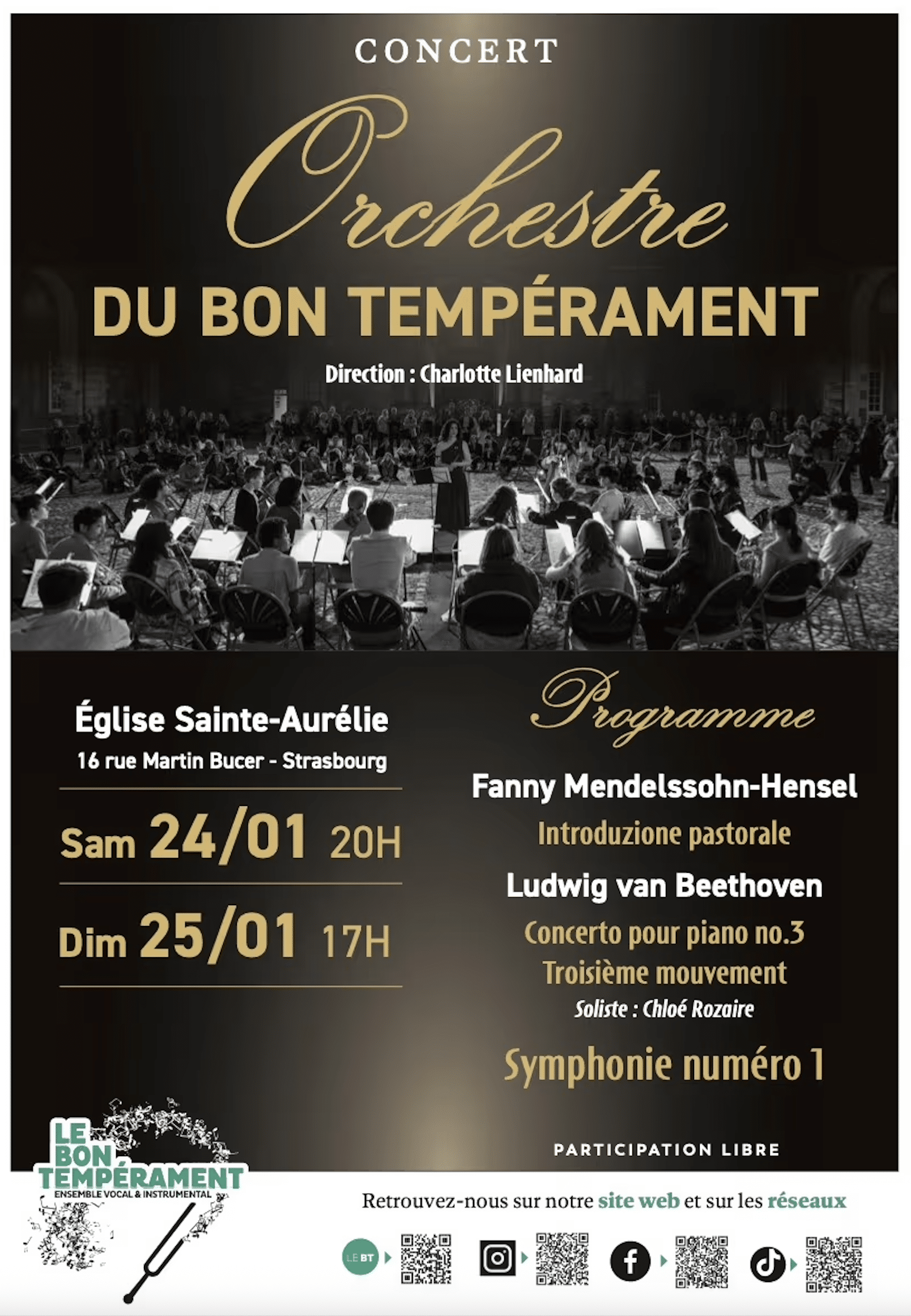 Samedi 24 janvier 2026, 20h00 et Dimanche 25 janvier 2026, 17h00 Concert avec l'orchestre Le Bon Tempérament / Hivernales 2026