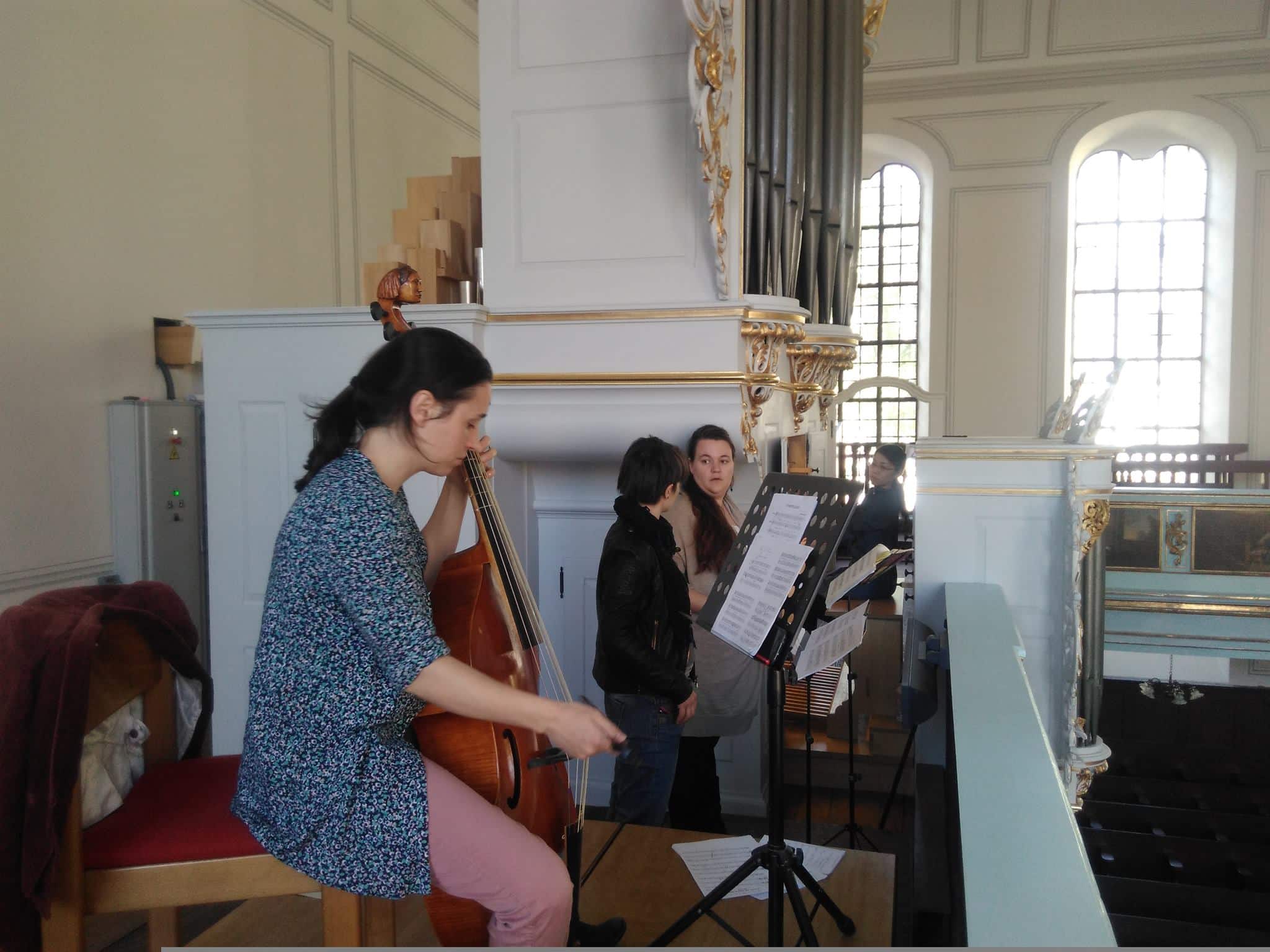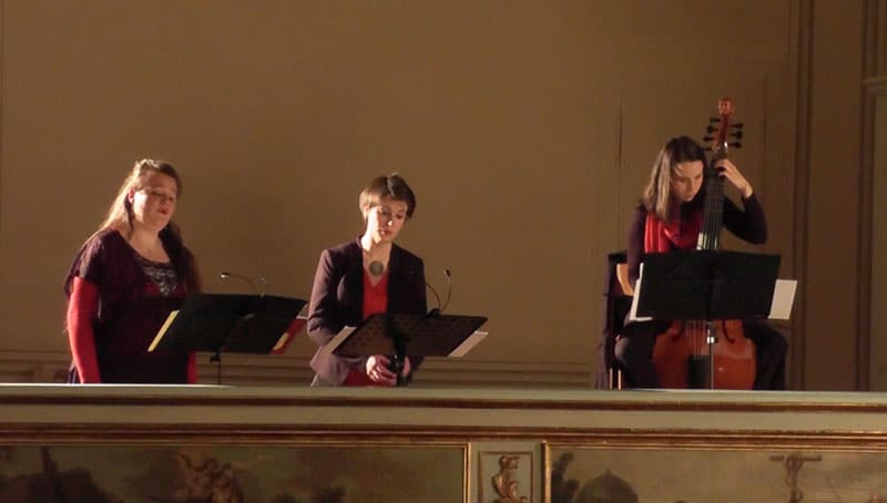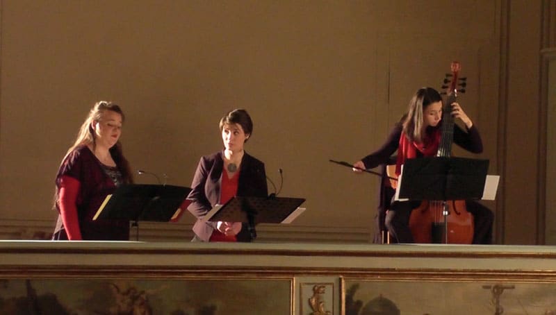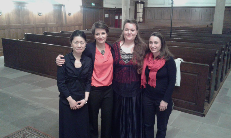 " Notre premier concert de Dames de Ferrare autour de Leçon de ténèbres de François Couperin a été donné à l'église Sainte Aurélie à ce samedi 20h30, avec Marie Ronot, Laura Phelut, Hélène Rydzek et Yuki Mizutani ! On a fait notre générale avec un petit public, y compris un bébé de moins d'un an qui écoutait très silencieusement jusqu'à la fin"
