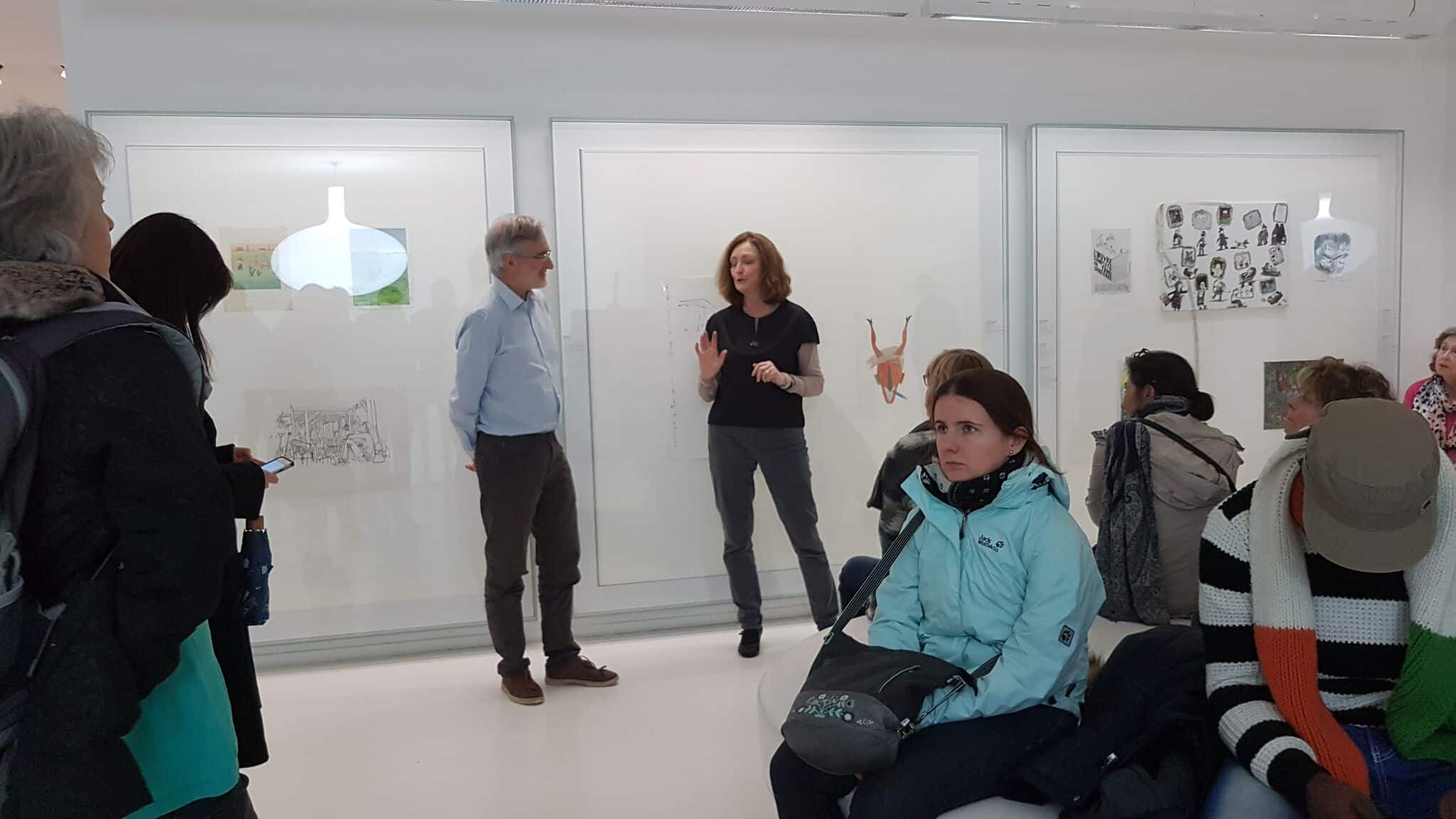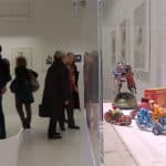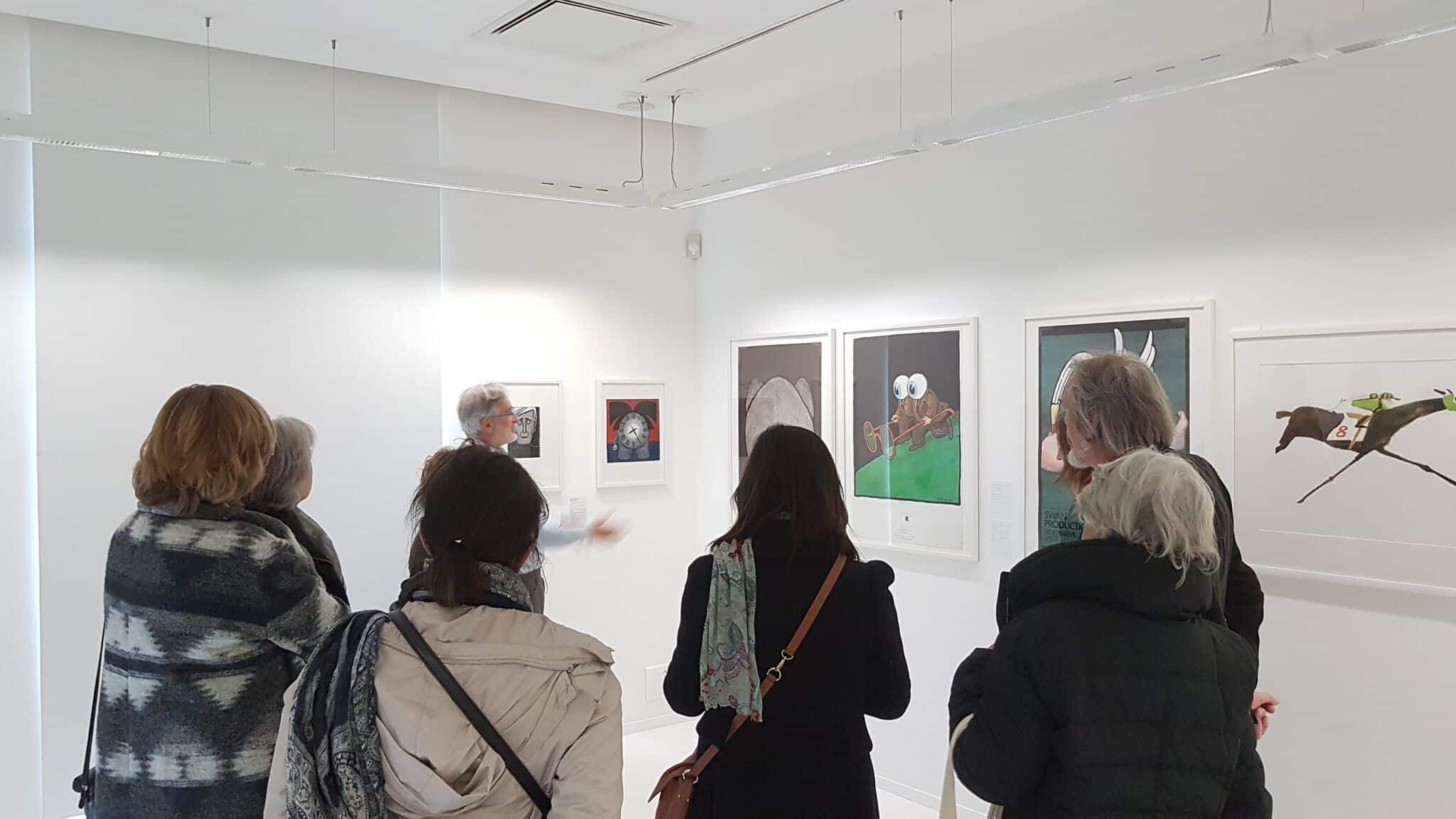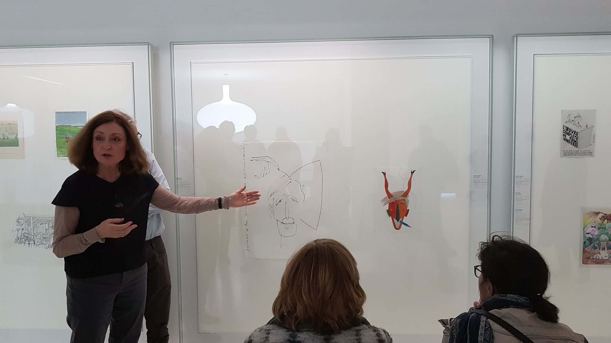 Un petit groupe s’est rassemblé autour des deux protagonistes de cette exposition rassemblant 85 artistes qui rendaient ainsi hommage à la carrière, l’artiste, l’illustrateur, l’affichiste, et l’homme Tomi Ungerer – qui a fêté ses 85 ans en novembre dernier.