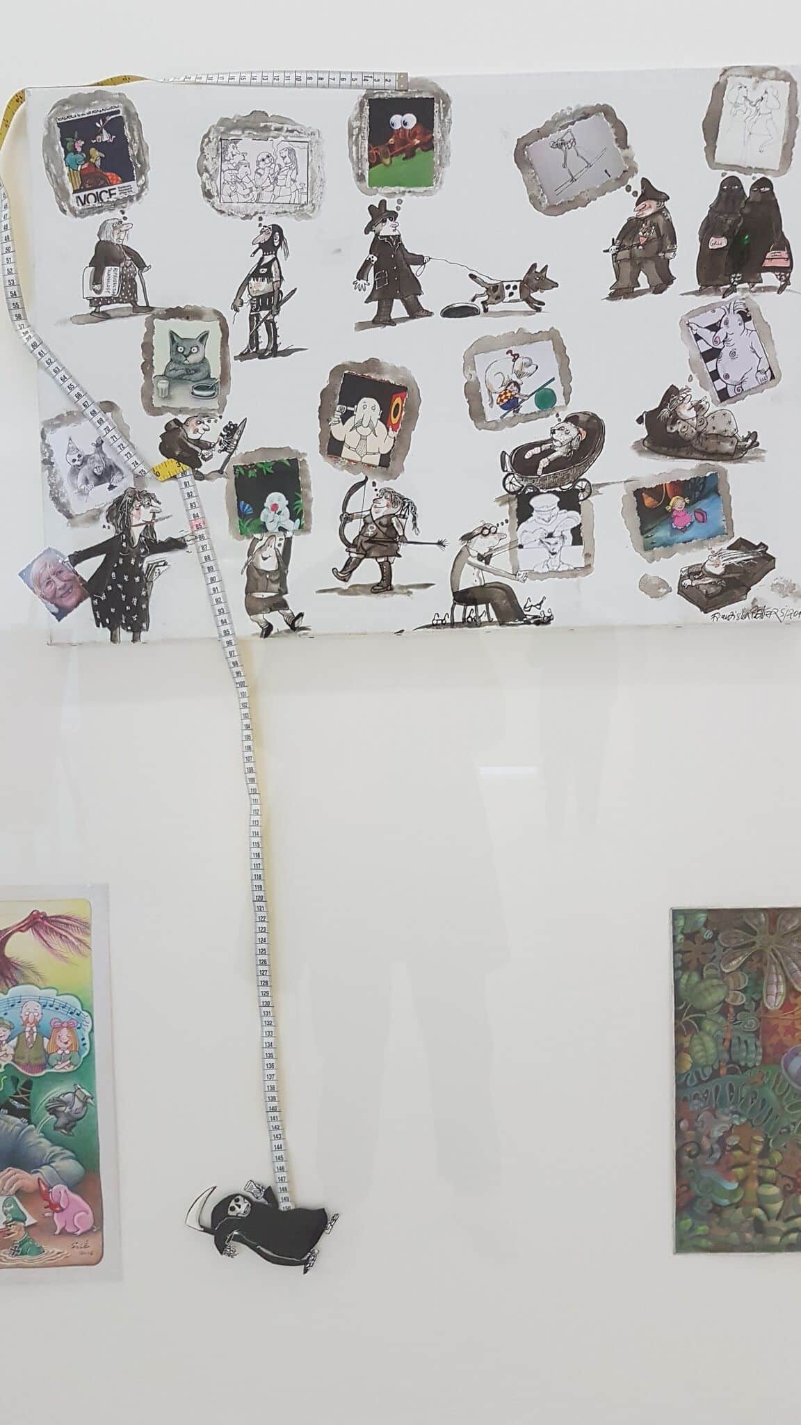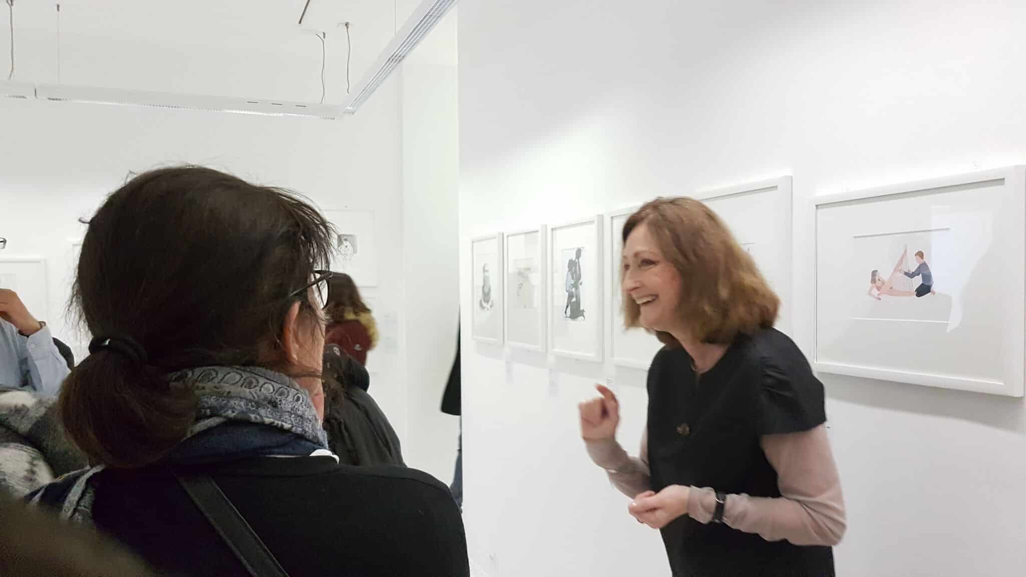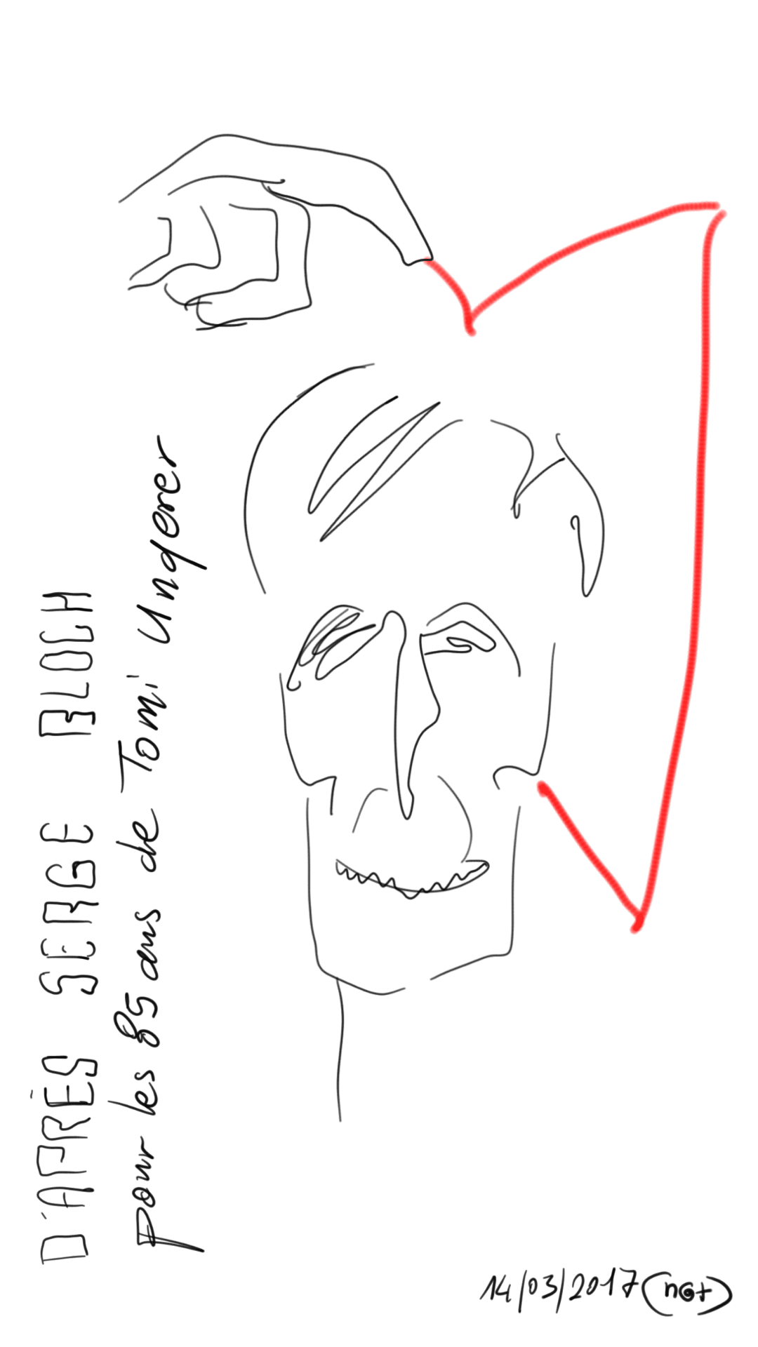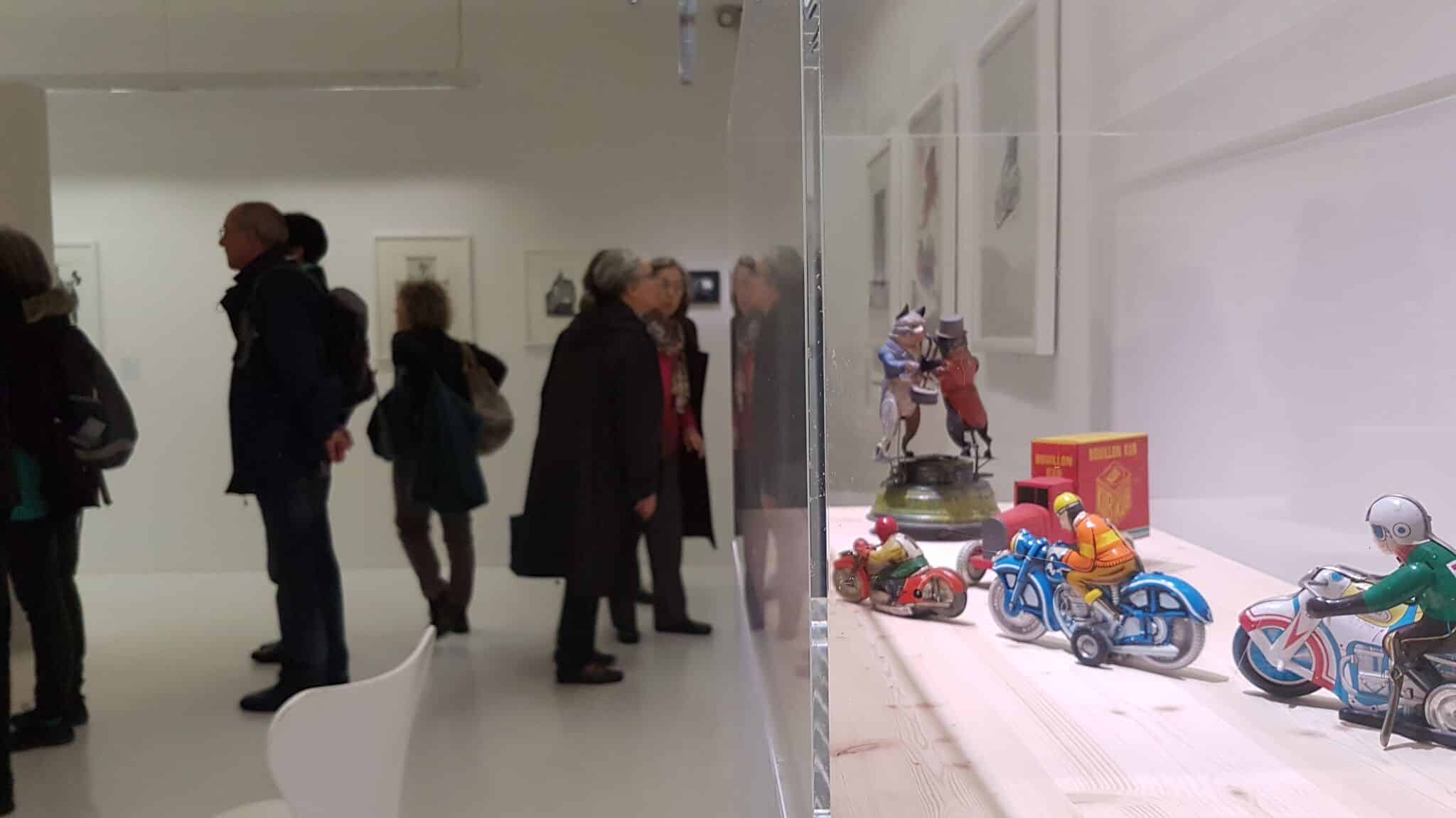 Un petit groupe s’est rassemblé autour des deux protagonistes de cette exposition rassemblant 85 artistes qui rendaient ainsi hommage à la carrière, l’artiste, l’illustrateur, l’affichiste, et l’homme Tomi Ungerer – qui a fêté ses 85 ans en novembre dernier.