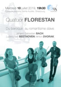 mercredi 10 Juillet, Quatuor Florestan / 19 h 30 - entrée libre - plateau " Du baroque au romantisme slave" sera consacré à trois compositeurs : Jean - Sébastien BACH, Ludwig van BEETHOVEN et Anton DVORAK.