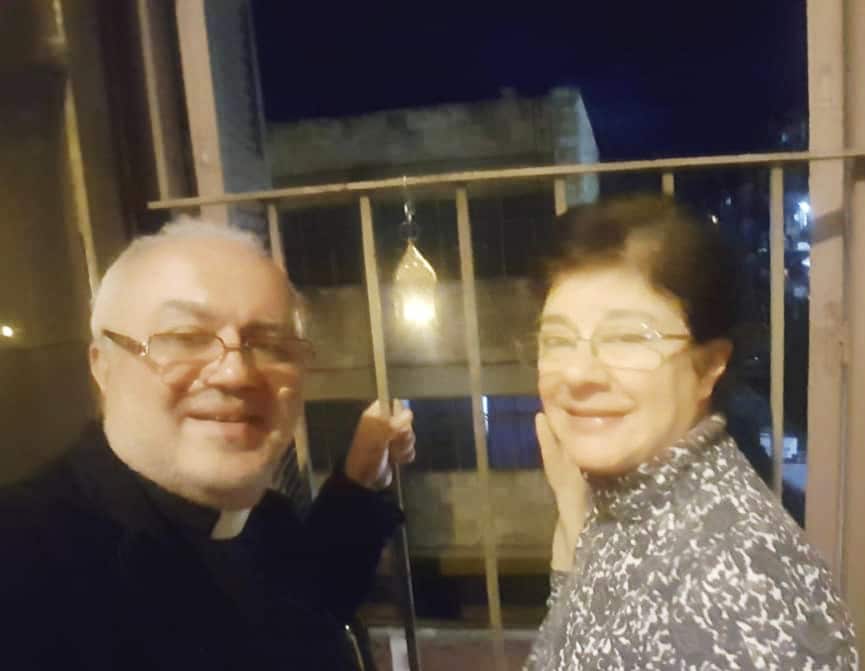 Notre pasteure Petra Magne de la Croix salue ses amis rencontrés lors de son séjour à Alep en octobre 2019. Amis qui ont fourni ces photos d’eux accrochant une lanterne à leur fenêtre, une lumière dans la nuit…