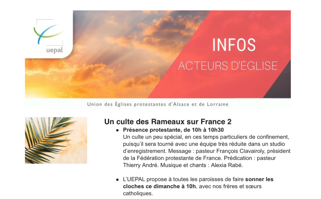 Une communication de l’UEPAL pour se préparer à demain et la semaine sainte qui suit le dimanche des Rameaux :