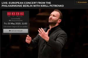Le concert du philharmonique de Berlin sera retransmis en direct en ligne à partir de 11h aujourd’hui – il est conseillé de venir sur cette page à peu près 20 minutes avant : https://www.digitalconcerthall.com/en/concert/53365