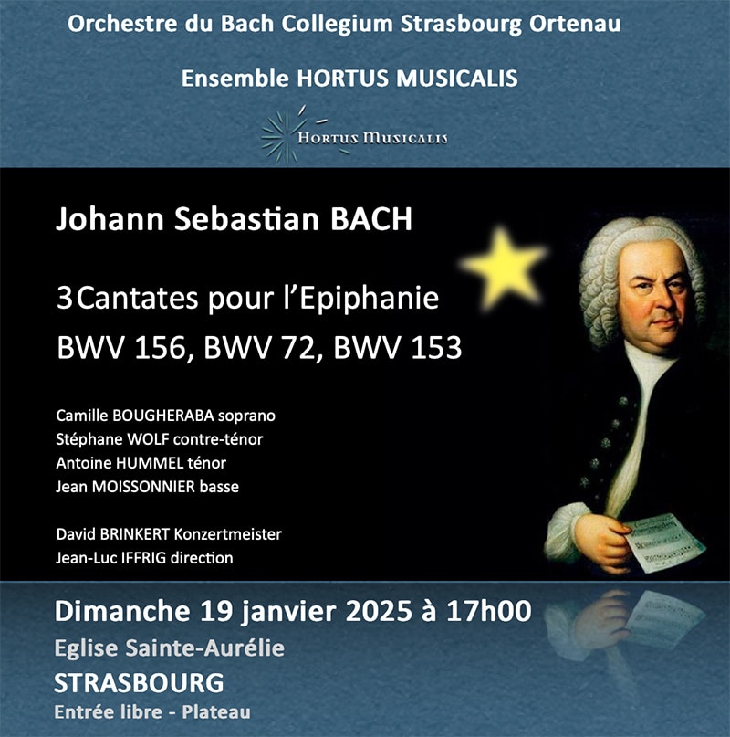 Au programme: 3 Cantates pour l’épiphanie Ich steh mit einem Fuß im Grabe BWV 156 Alles nur nach Gottes Willen BWV 72 Schau, lieber Gott, wie meine Feind BWV 153